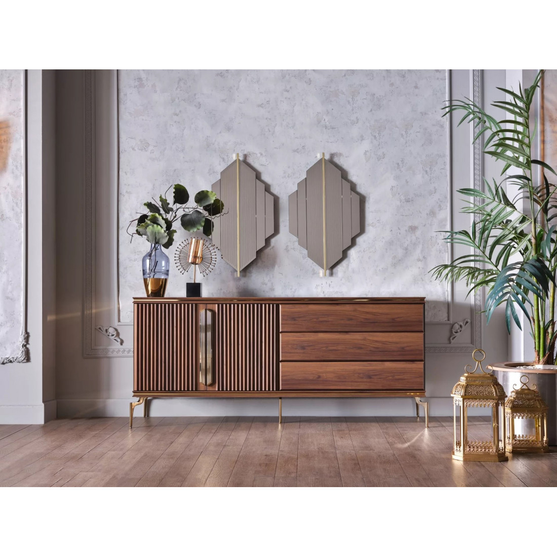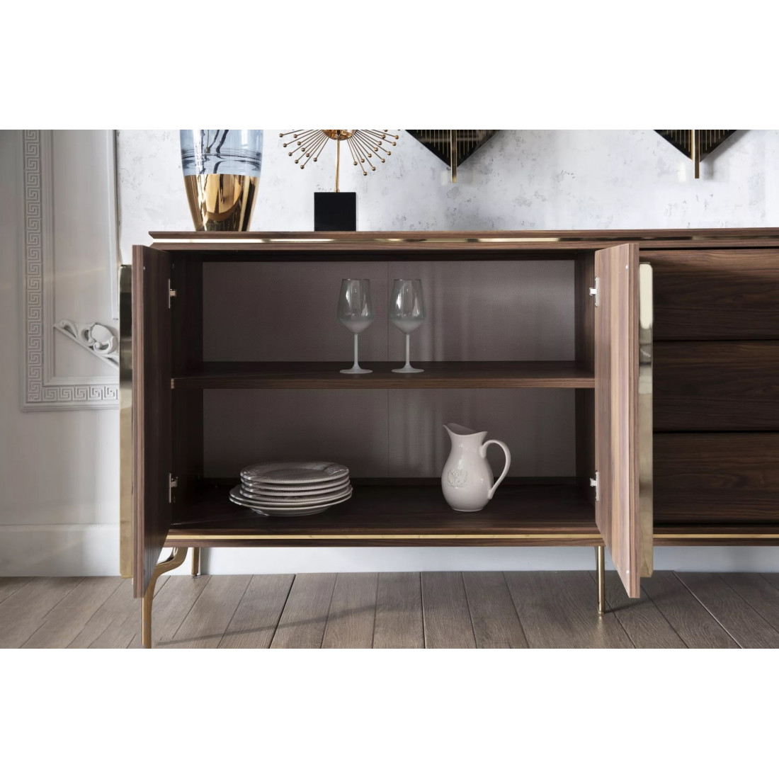 Буфет "Монтего" выполнен в современном стиле и украсит собой любую гостиную или столовую. Светлые тона и необычные ножки придают еще больше современности буфету.