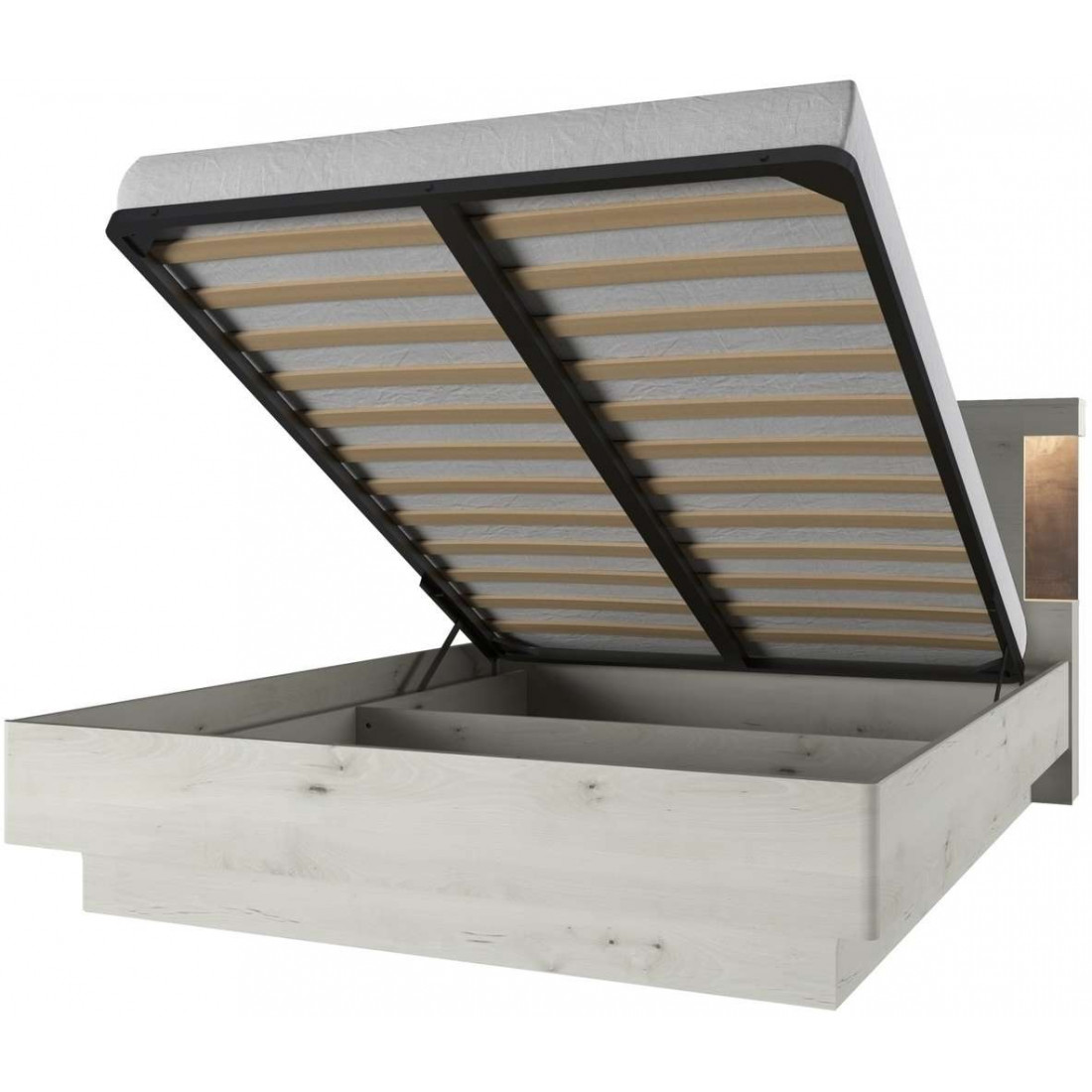 Двуспальная кровать Бьёрк 160 P с подъемным механизмом — предмет современной коллекции в стиле Loft, где все элементы мебели выполнены в декорах ольха полярная и оникс с использованием уникальной структуры плиты.
