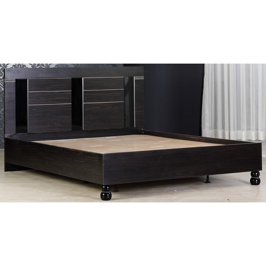 - стразы украшают декоративные уголки спинки и ножки кровати;