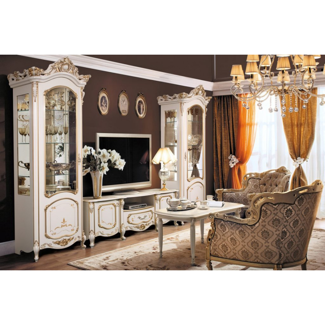 Гостиная Элиза (беж) – это центральное место в доме, где хозяева не только принимают дорогих гостей, но и отдыхают сами. Атмосфера этой комнаты должна быть по-домашнему уютной, но при этом солидной и представительной. Достичь идеальной гармонии можно за счет использования всегда актуальной классики. Поэтому дизайну интерьера гостиной часто уделяют основное внимание- ведь это «лицо» вашего дома.