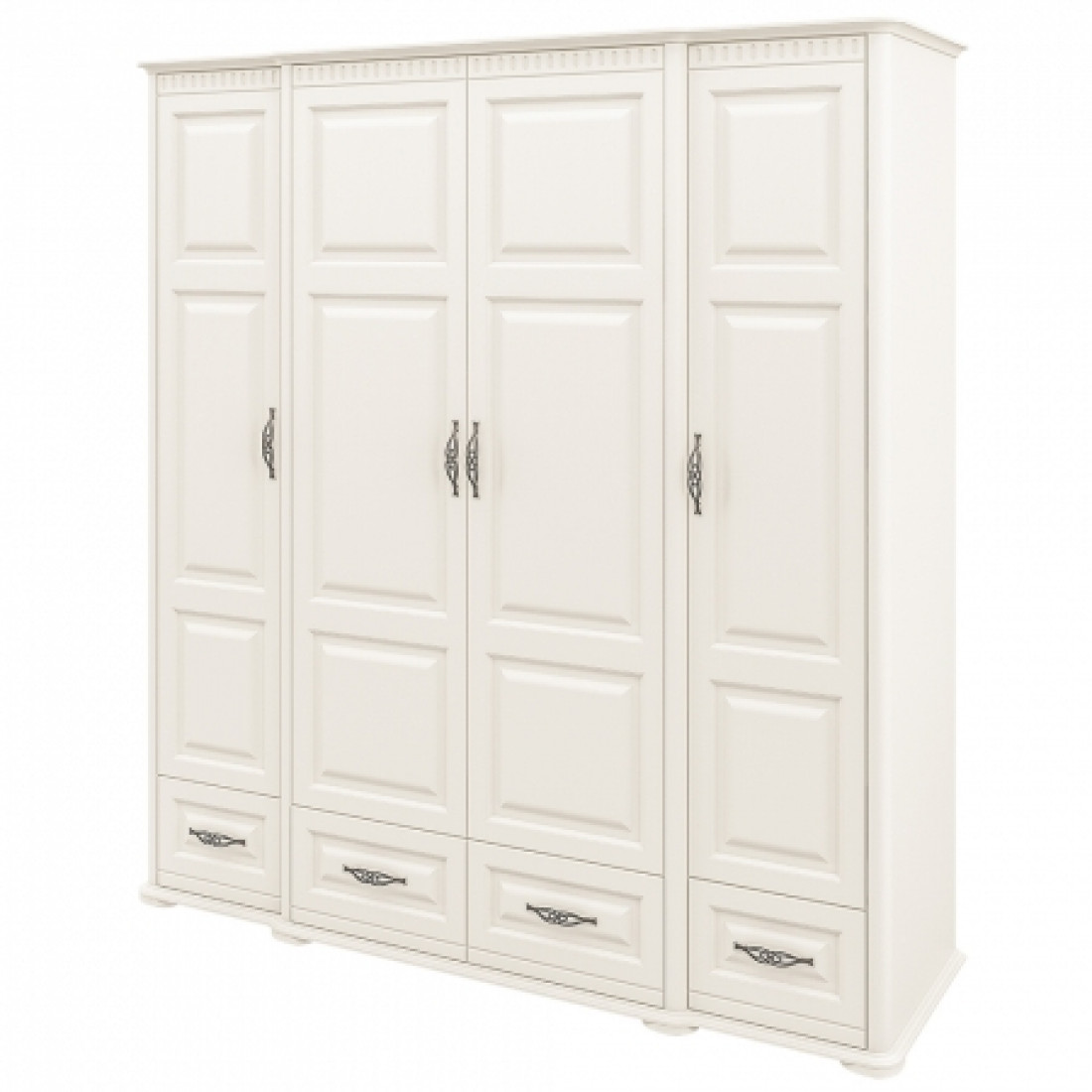 Роскошный четырехстворчатый шкаф для одежды и белья МН-126-04(1) в спальню новой серии Марсель (Мебель-Неман) выполнен в светлом кремовом оттенке является настоящим подарком производителя. Купить шкаф можно для комплекта полного спального гарнитура Марсель с другими элементами серии или отдельно.