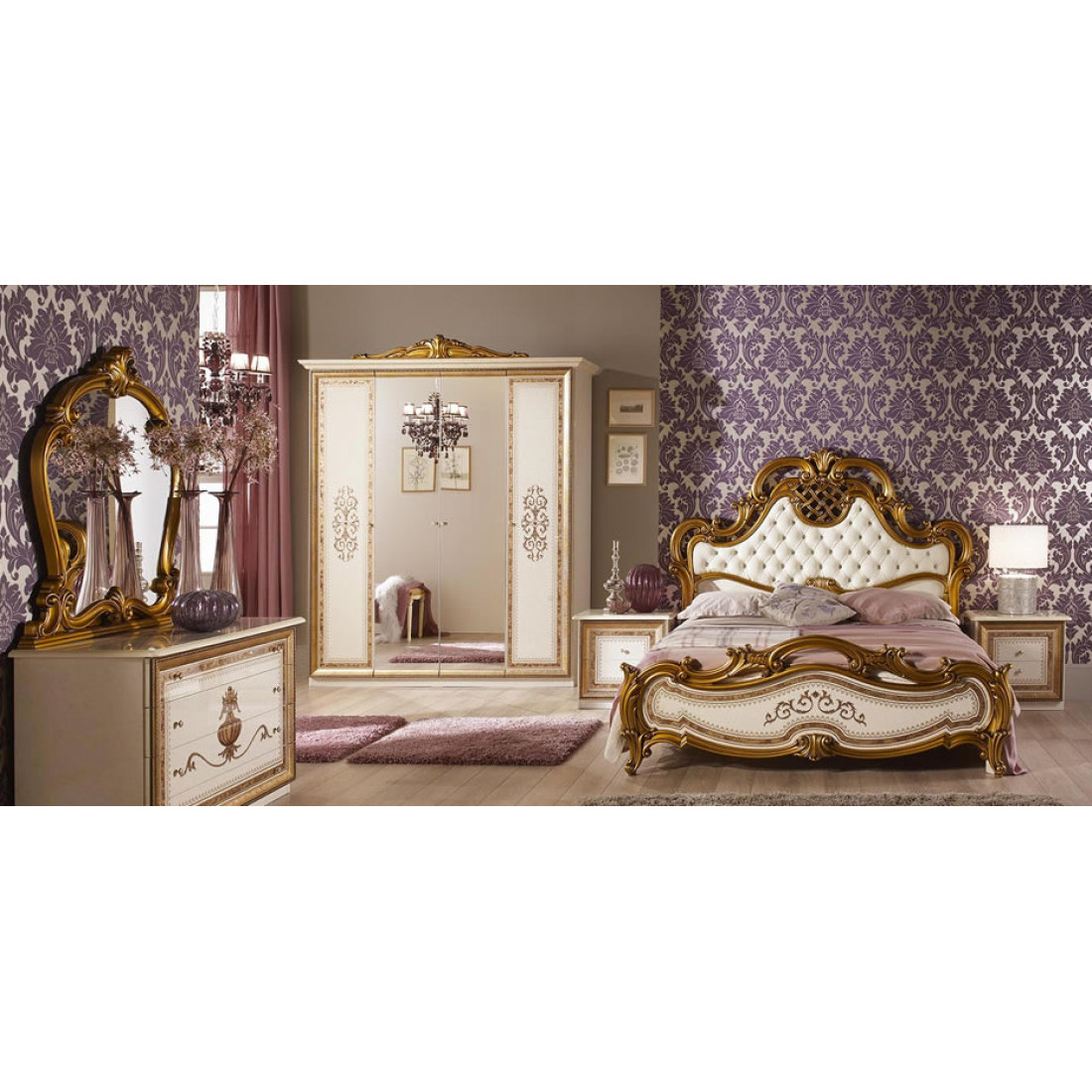 Спальня Анита (беж) от Российской фабрики «ДИА мебель» Выполнена в бежевом цвете с отделкой золотых фасадов. Классический стиль придают интерьеру неповторимую уникальность и роскошь. Изгибающие линии кровати и зеркала придают легкость и воздушность спальне. Коллекция "Анита" придаст вашей спальне экстравагантность и принесет свежие нотки в Ваш дом.