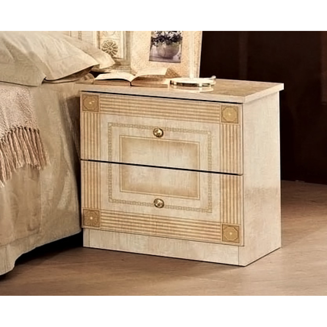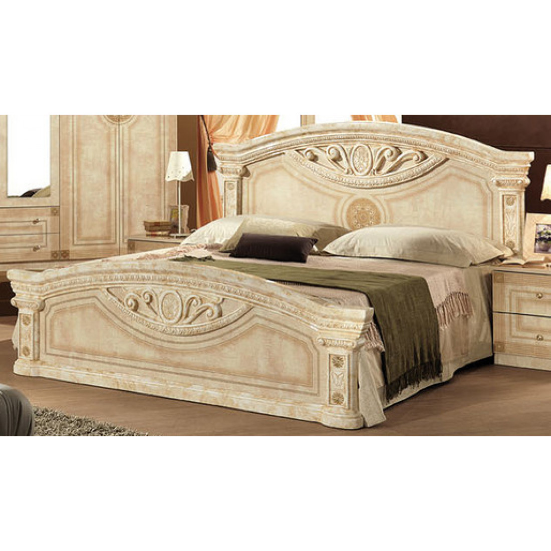 Спальня Рома (беж) от Российской фабрики «ДИА мебель» выполнена в строгом, классическом стиле. Бежевый цвет в сочетании с глянцевым покрытием придает элегантность. Такая спальня поможет Вам окунуться в атмосферу роскоши и комфорта. Безшумные и плавно закрывающиеся дверцы шкафа и комода помогут с легкостью забыть о шуме по утрам. Вся коллекция "Рома" предназначена только для истинных ценителей элегантного классического стиля.